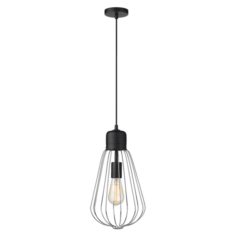 Product Description Metal Pendant with Chrome Frame– 1 x 60W (11W) ES Dimension Width: 210mmHeight: 420mmCord: 1000mmCeiling Cup: 100mm BARCODE: 6007226075854