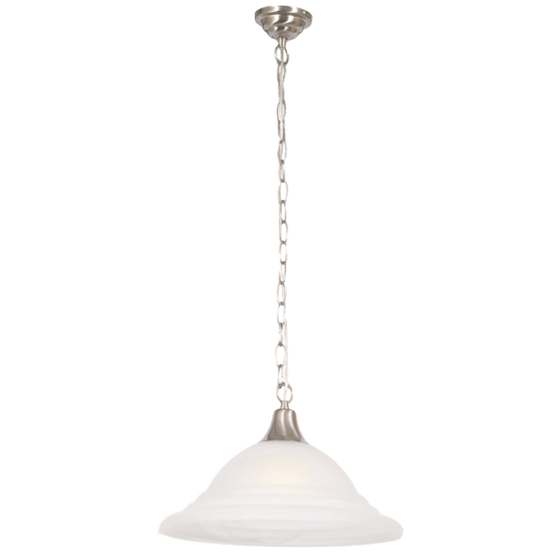 Product Description Satin Chrome Pendant with Alabaster Glass– 1 x 60W ES Dimensions: Width: 400mmChain: 600mm BARCODE: 6007226025941