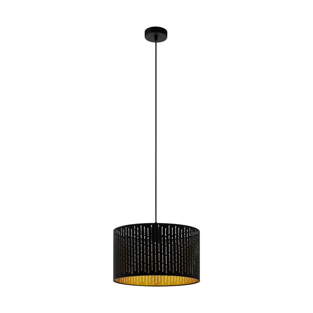Product Description This pendant luminaire of the VARILLAS series is made of black powder-coated steel and a textile shade with cut-outs in black and an inside...