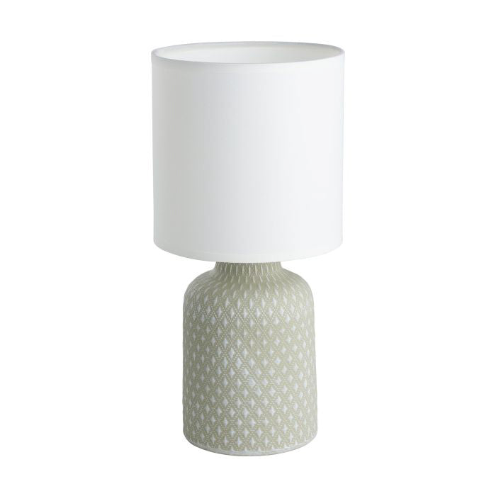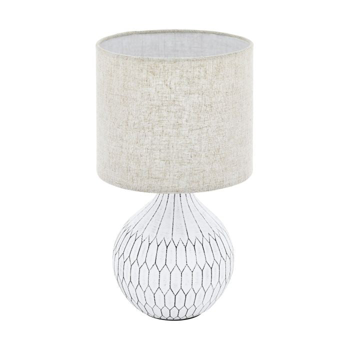 Product Description The BELLARIVA table lamp features a curved ceramic base in a creamy white finish, embodying a trendy boho design. Its round white fabric lampshade...