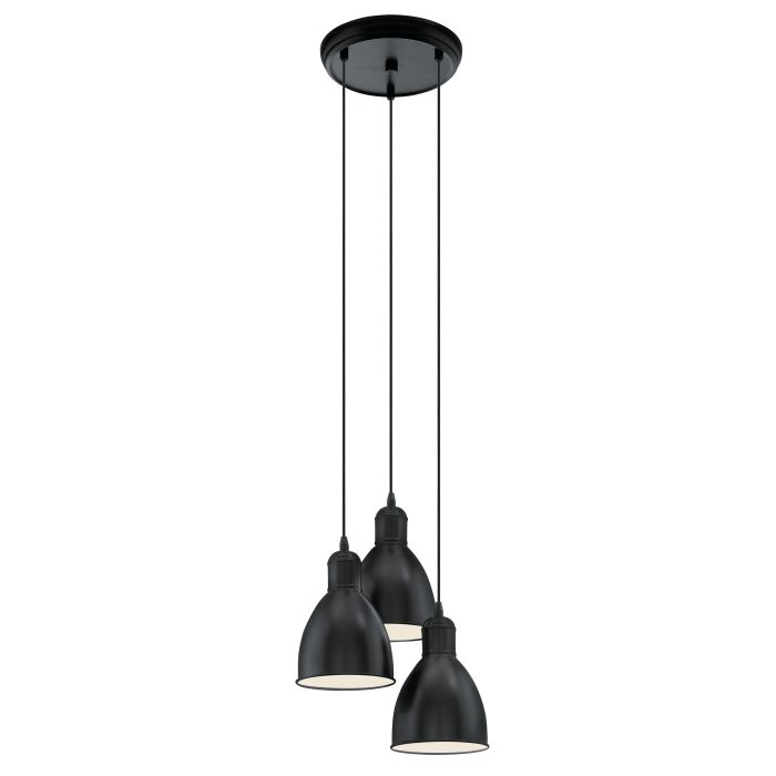 Product Description The PRIDDY pendant light features three round metal lampshades with a black finish and a white inner surface. The lampshades hang at different heights...