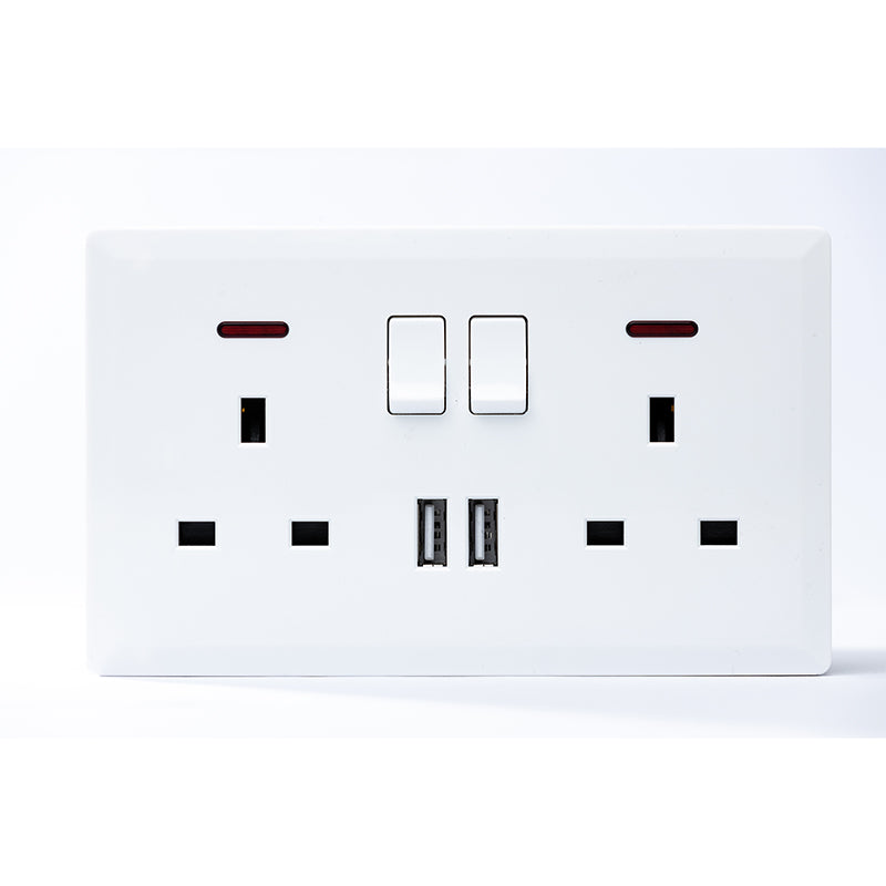 Switched double 13a socket with 2 usb port (white) - #s7.0-048w