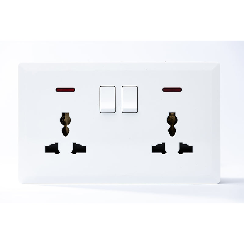 Switched double 3 pin universal socket with neon (white) - s7.0-046w