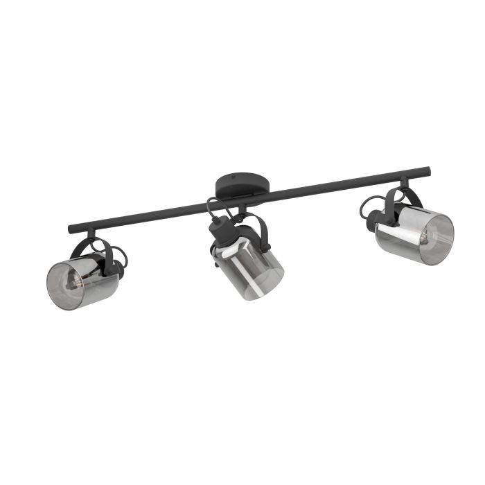 Product Description The BERREGAS ceiling light features a structured black metal mount with three adjustable spotlights made from black-transparent glass. With its pivoting heads, the ceiling...