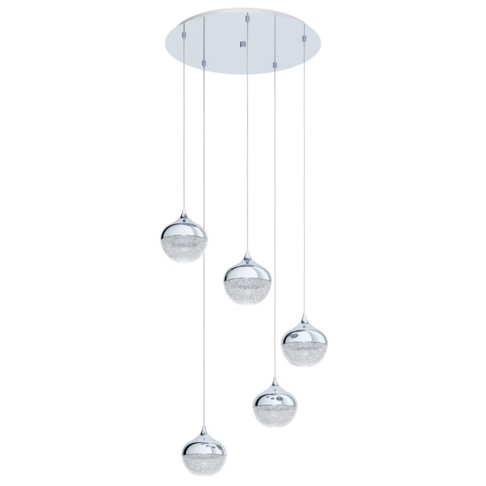 Product Description The MIOGLIA 1 pendant light has five heads, each with an upper half made from chrome-coloured metal and a lower half featuring a high-quality...