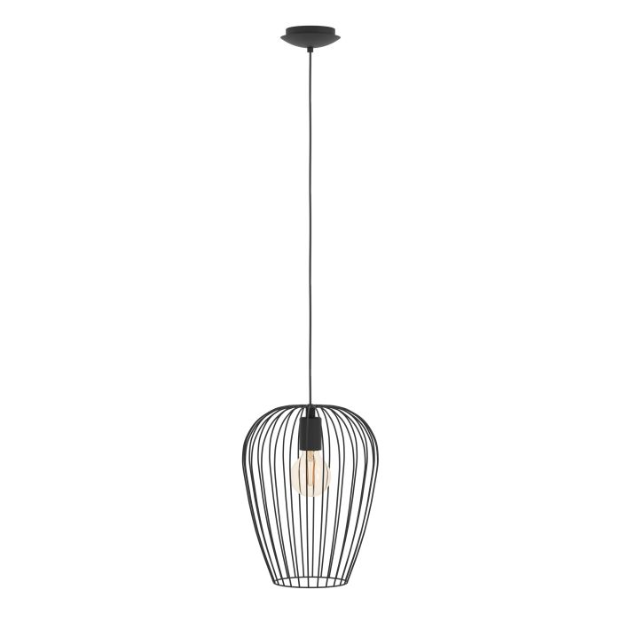 Product Description The NEWTOWN pendant light features an oval black wire lampshade suspended from a round black metal canopy. The wire shade creates a fascinating play...