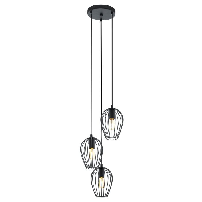 Product Description The NEWTOWN cluster pendant light features three oval black wire lampshades suspended from a round black metal canopy. The wire shades create a fascinating...