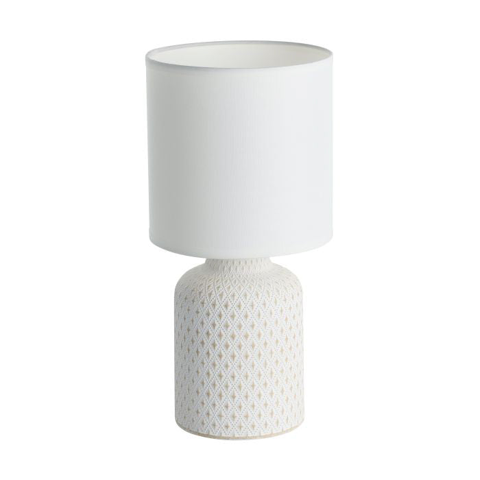 Product Description The BELLARIVA table lamp has a curved ceramic base in a creamy white finish in a popular boho design paired with a round lampshade...