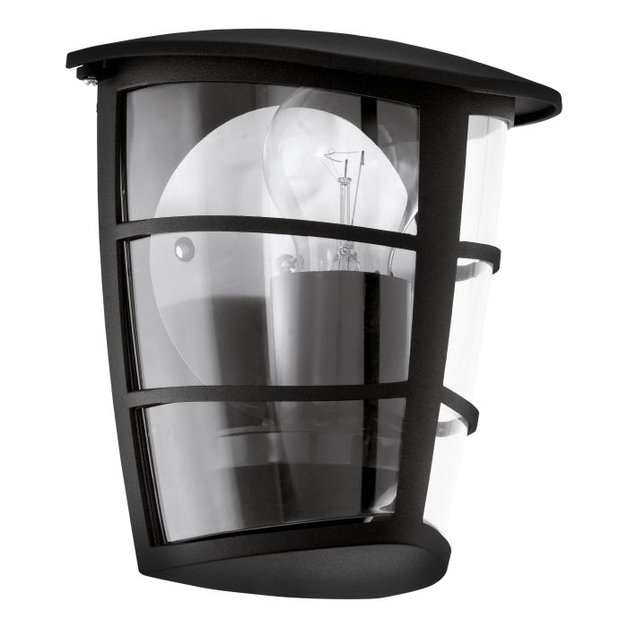Product Description The BUFALATA exterior wall light features a black steel wall mount with a wooden effect beam and contrasting black-transparent plastic globe diffuser. With a...