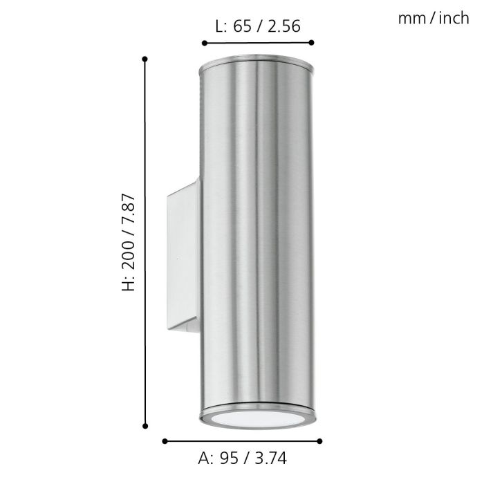 The RIGA Wall Light (#94107) is a modern outdoor lighting fixture that combines style and functionality. With its sleek cylindrical design and stainless steel finish, it enhances outdoor spaces while providing effective illumination. This wall light features dual light sources, directing beams both upward and downward, creating an inviting ambiance for patios, gardens, or entryways. Rated at IP44, it is resistant to water splashes, making it suitable for various weather conditions.